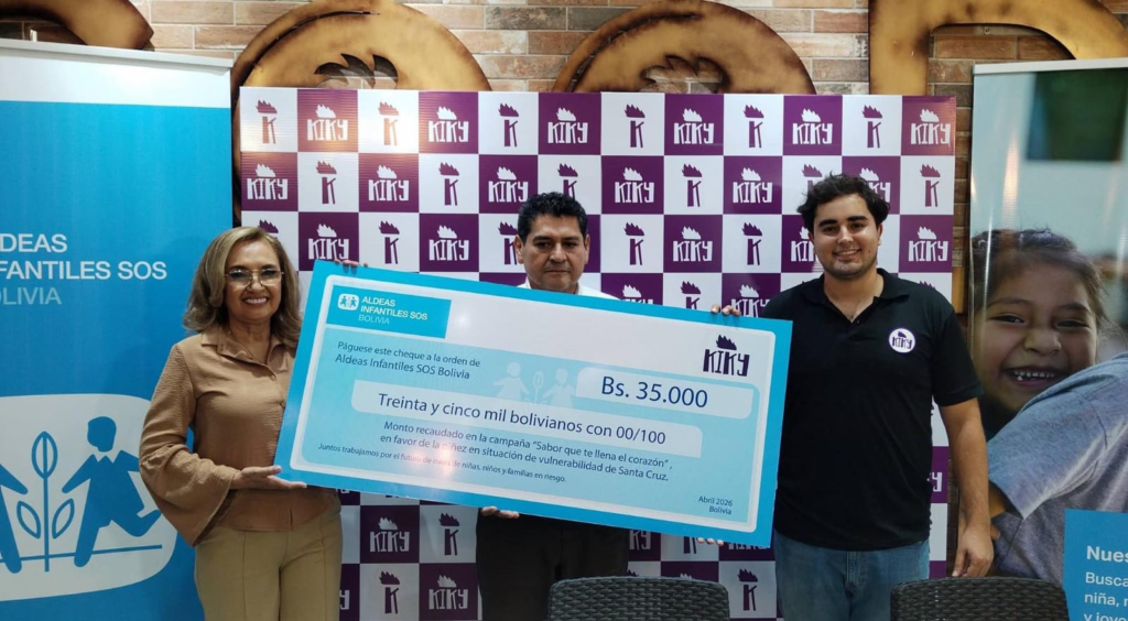 Aldeas Infantiles SOS Bolivia y Pollos Kiky concluyen la campaña solidaria «Sabor que te llena el corazón», una iniciativa que movilizó a la ciudadanía para apoyar a niñas, niños y familias en situación de vulnerabilidad. Gracias a la participación de la población, se logró recaudar un total de Bs. 35.000, monto que será destinado a fortalecer los programas de atención integral que Aldeas Infantiles SOS implementa en Santa Cruz.