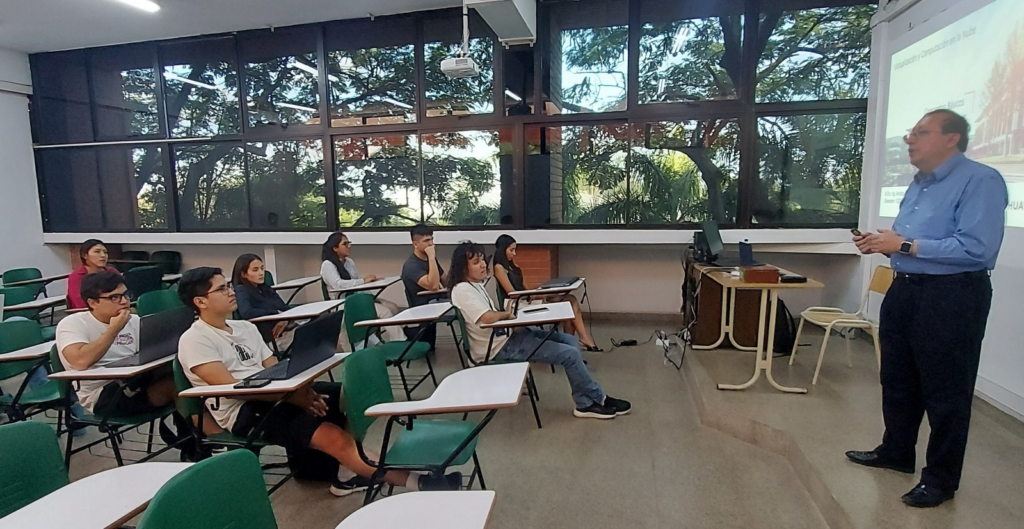 El curso es dictado por el MSc. Ingeniero Arnildo Cardozo Daza, Gerente de Tecnología de Huawei, quien explicó que la materia combina fundamentos teóricos con laboratorios prácticos internacionales. “Virtualización y computación en la nube permite a los estudiantes comprender cómo se crean y gestionan servicios en la nube, desde servidores y almacenamiento hasta bases de datos desplegadas bajo un esquema de recursos compartidos, pago por uso y alta flexibilidad. Además de la teoría, realizan prácticas reales en laboratorios habilitados por Huawei, lo que les brinda experiencia concreta para su inserción laboral”, señaló.